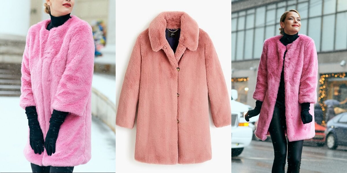 Буквально на днях я видела такой пример: женщина соединила такую шубку нежно розового цвета с классическими черными брюками и устаревшими по форме черными полуботинками. Вместо шапки – платок с русскими узорами на голове, повязанный косынкой. Сумка классическая дамская через плечо.