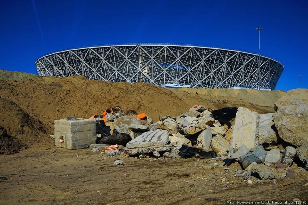 СМЫТЫЙ ДОЖДЕМ ФУТБОЛЬНЫЙ СТАДИОН ВОЛГОГРАД АРЕНА - такие названия можно встретить в репортажах всего пару лет назад. Но тем не менее, давайте посмотрим, как стадион выглядит сейчас. Футбольный стадион Волгоград Арена является олимпийским спортивным объектом, и это многое объясняет. То, что я увидел на месте этого объекта - не поддается никаким описаниям, это вам не расскажет ни один инженер-строитель, ни один архитектор и рабочий, ни один блогер и журналист. Это нужно видеть. Это просто ад и жесть, - так бы я мог начать свой репортаж. Но тем не менее, возможно я сгущаю краски, но речь идёт о футболе, если вы не забыли, именно о футболе, ради которого был спроектирован и построен в кратчайшие сроки этот стадион... на склоне реки. В 2014 году руководство местного волгоградского футбольного клуба "Ротор" сообщило о проблемах с финансированием, и клуб снялся со всех соревнований. В довершение ко всему закрылся стадион «Центральный», который был для команды настоящим домом многие годы