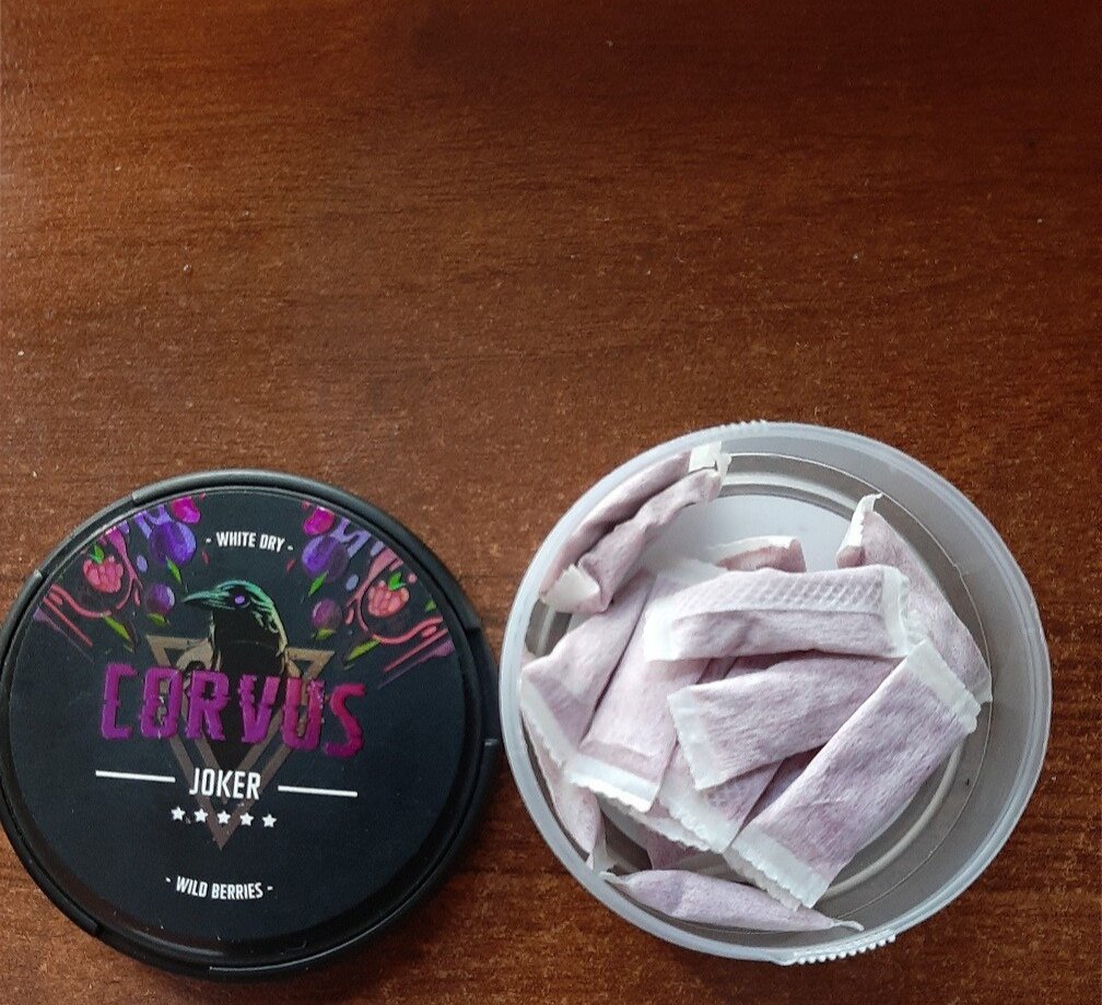 Обзор на снюс Corvus Joker. 1. Шайба - 8/10 Заслуженные 8 баллов. Почему не 10? Дизайн выглядит круто, но его не меняют, добавили ягоды на крышку и вот вам джокер (сказали они). А так ещё полупрозрачный низ.🧫 2. 💀Жмых - 8/10 Жмыхает он хорошо, но если вы не заядлый кидальщик, а новичок.Там заявлено 50 мг. При вкиде ощущаешь только 30-40.🥈 3. Жжение - 9/10 Жжения при вкиде свежака почти нет (или его нет потому что я заядлый кидала), но вторяки жжёт губу.👍 4. 👅Паки - 9/10 Паков тут 30 штук, 30 карл. Я бы поставил 10 балов но есть одно но Их размер. Они слишком длинные, из-за этого их не удобно кидать😶 5. 🌈Вкус - 9/10 Когда кидал, запах был, но немного ебашил в нос никитос. Про вкус: был довольно приятный сладкий вкус ягод типа черники, ежевики, ну вот как сок) 6. 💎Цена и доступность - 10/10 В любой табачке 300-350₽.Обычная цена💰 Есть везде Итог - 7/10 Если вы хотите взять одну шайбу на долго, не тратя много денег, то можно взять его. Но те у кого денег побольше рекоменд