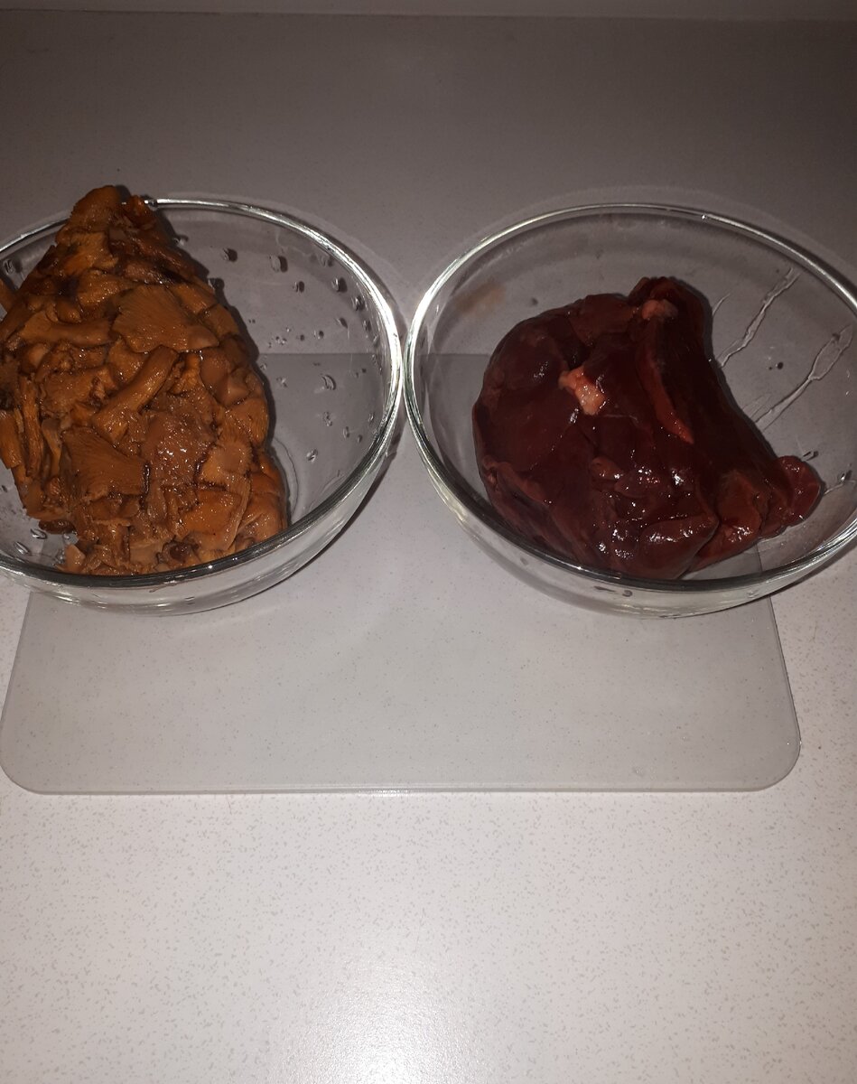 А сегодня мне так захотелось вновь этого блюда и решила приготовить его сама на ужин. Самое интересное, что я сама бы никогда бы не догадалась соединить печенку и грибы.