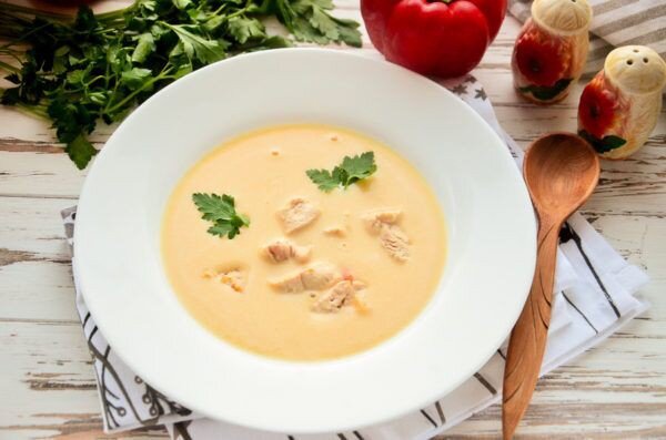 С таким блюдом как сырный суп экспериментировать можно до бесконечности. Почему? Наверное потому, что из-за чудесной сырной основы его вкус в любом случае будет чудесный. Ниже предложен рецепт сырного супа, с добавлением овощей. Овощи в данном случае будут светлые, чтоб создать и подчеркнуть идеальный оттенок супа. Суп также хорош, тем, что он постный. От мяса надо иногда отдыхать. Ингредиенты. Капуста цветная 1 шт.; Кабачок 1 шт.; Картофель 3 шт.; Сыр адыгейский 250 г; Куркума 0,3 ч.л; (по вкусу) Соль по вкусу; Перец чёрный молотый; по вкусу. Данные ингридиенты могут быть немного изменены. Например, вместо цветной капусты использовать белокочанную. Кабачки заменить на стебли сельдерея. Картофель можно заменить на белую отварную или консервированную фасоль, а адыгейский сыр, использованный в рецепте вполне заменит плавленный или другой несычужный сыр. Приготовление: 1. Подготовить овощи. Картофель очистить, порезать небольшими кусочками. Цветную капусту разобрать на соцветия.