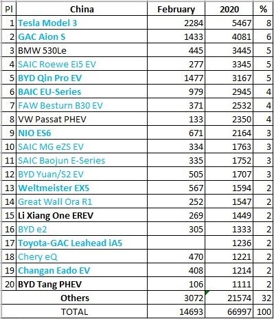 На а лидером в Китае в феврале стала дорогая американская Tesla Model 3 (что лишний раз доказывает: премиальный сегмент хорошо себя чувствует даже в условиях кризиса). Второе место по итогам февраля за китайской моделью BYD Qin Pro EV. Третье – еще за одним «китайцем» - GAC Aion S. Да и вообще – в первой двадцатке самых популярных экологически чистых машин только три не китайские модели. Помимо Tesla Model 3 это гибридный Volkswagen Passat и BMW 530 Le.