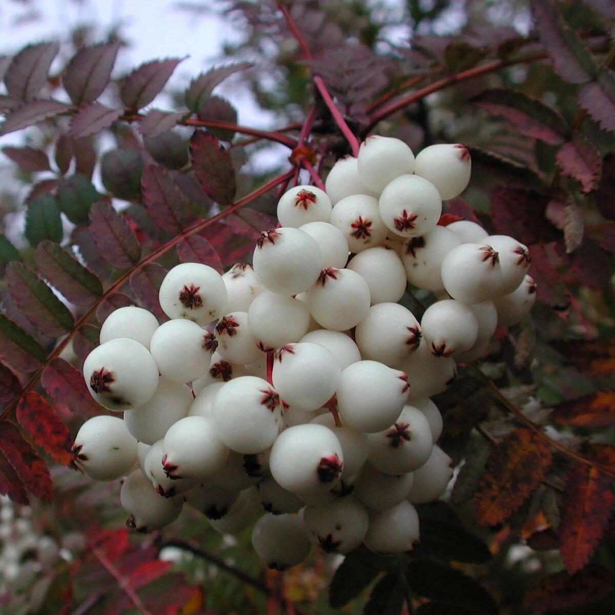 Рябина Кёне - похожа на Кашмирскую белыми плодами, но в целом Кёне образует более рыхлый куст,со свисающими побегами. В высоту она всего 300 см, и столько же в диаметре. В природе встречается в лесах центральных районов Китая и Восточной Азии. Выносит полутень.