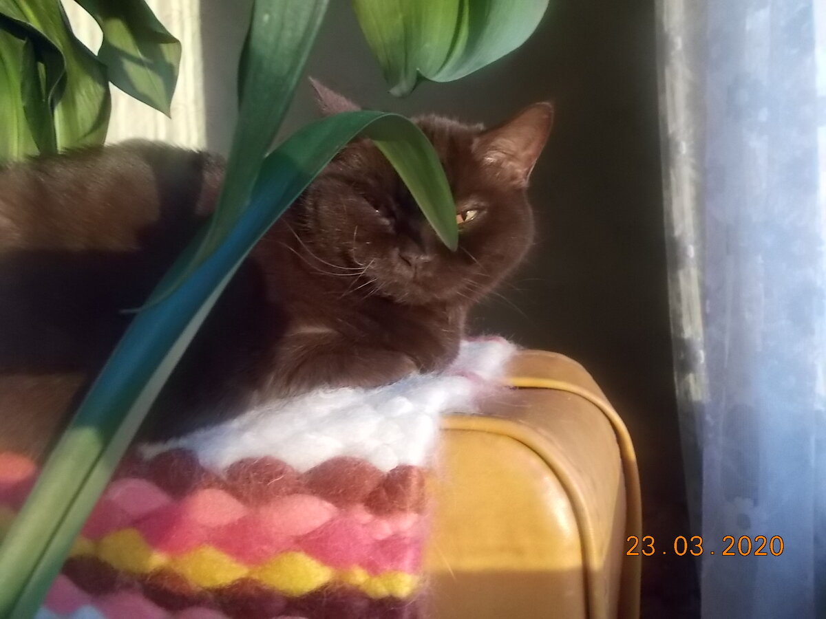 С утра солнечно, мороз минус 10. Кошка Прада сразу к окну. На солнышке-то тепло.