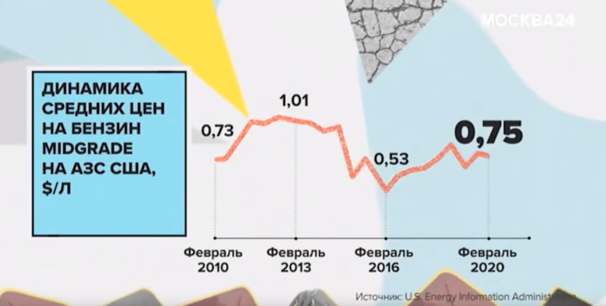 Есть на российском ТВ телеканал Москва24. Который снимает очень интересную финансово-развлекательную передачу ФАНИМАН. О деньгах с юмором и на доступном языке. В последнем выпуске ведущие объяснили здорово, наглядно и интересно русскую нетленку-призказку про цены на бензин. У нас ведь как: если цены на нефть растут - цена на бензин растёт. Если цены на нефть падают - цена на бензин растёт. Для примера - график динамики изменения цен на топливо в США за последние 10 лет, 1 картинка. В феврале 2010 нефть была по 75 долларов, а бензин (аналог нашего 95-го) стоил 0.73 бакса за литр. В феврале 2013, когда нефть стоила выше 110 баксов, литр бензина в США стоил около 1 доллара. В феврале 2016 нефть была по 30 баксов, и цены на бензин в США упали до 53 центов за литр. Сейчас уровни цен на заправках в США вернулись к 75 центам в среднем, ну это еще до обвала цен на нефть и приключений ОПЕК. Что происходило с ценами на бензин в России? Смотрите график номер 2. Они постоянно росли и не падали,