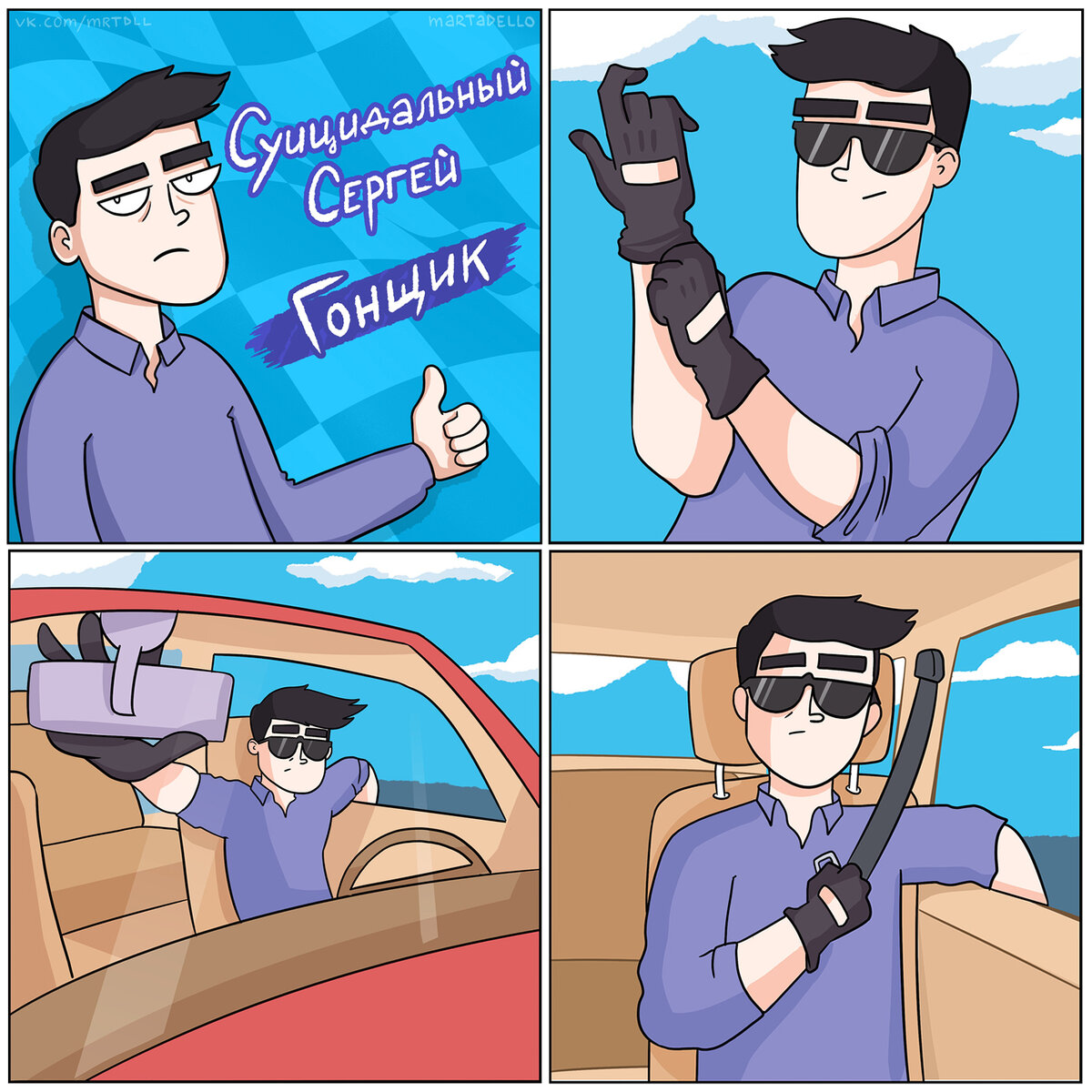 Творчество Мартаделло примечательно тем, что оно как бы поделено на части. Есть основные персонажи, на которых строятся комиксы Кости. Суицидальный Сергей, Томный Влад, Доктор Посос и еще много других, но сегодня хотелось бы остановится на первом.