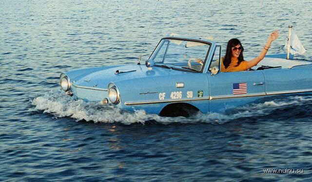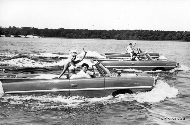 Первый легковой автомобиль, который был способен передвигаться как по суше, так и по воде был создан в Германии и назывался "Amphicar". Он выпускался с 1961 по 1968 год. Главным его недостатком была низкая скорость передвижения по воде.