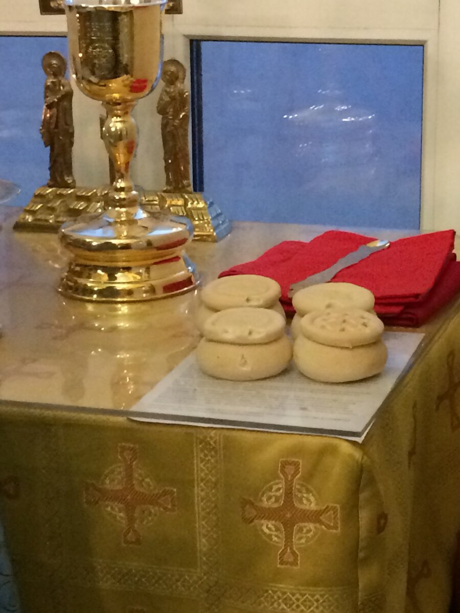 Просфора- с греческого языка означает «Приношение». Специально испечённый , пшеничный, квасной хлеб для совершения Литургии. Этот хлеб круглой формы и состоит из двух частей, что символизирует два естества Христа, Божеское и человеческое. На верхней части стоит печать с буквами «ИС. ХР.» «ΗΙ-ΚΑ», что значит « Иисус Христос, Победитель!» Для проскомидии используются пять больших просфор, четыре крестовые и одна Богородичная, из одной вырезается «Агнец» который на Евхаристии Пресуществляется в «Тело Христово». Из Богородичной вынимается частица в честь Божией Матери, из других в честь святых и о живых и усопших. Также приносятся малые просфоры для вынимания частиц с поминовением имён поданных в записках. В древности приносился христианами перед богослужением. В Греческой Церкви до сего дня можно купить его в булочной и принести в храм для поминания принёсшего и его сродников. В Русской традиции просфоры пекутся в просфорнях и приобретаются приходами, а прихожане подают записки с именами