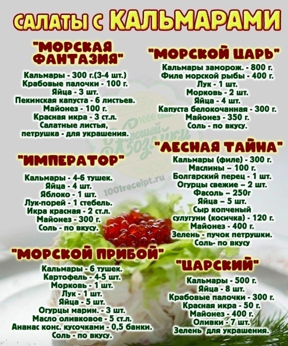 Салаты с кальмарами на любой вкус!!