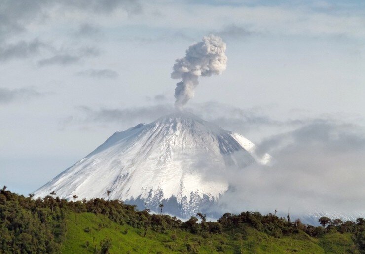 В Южной Америке находится один из вулканов-гигантов – Котопахи. Его высота – 5897 метров. Котопахи – действующий вулкан, расположен в горах Анды в пятидесяти километрах от столичного города Кито. Он стоит на втором месте среди высоких точек Эквадора и на первом среди местных действующих вулканов.