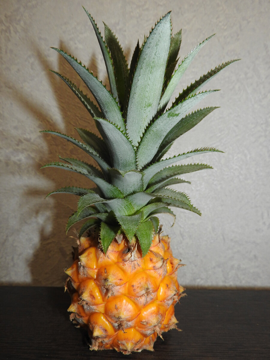 Идею вырастить на подоконнике ананас я вынашивала много лет. Читала, покупала ананасы, обрезала, держала во влажном грунте, накрывала банкой... И ничего. Но, однажды, получилось. Зеленый хвостик дал таки тоненькие корешки (проросли в воде). Я посадила в подготовленный грунт и стала ждать. А ждать пришлось очень долго, целых 3 года. ТРИ года я носилась с этим колючим кустиком, летом на улицу, зимой на подоконник. Живу я на Дальнем Востоке. Зимы здесь суровые, лето жаркое. В общем, бегала я бегала и через три года, а было это в начале лета, сказала, что на зиму заносить его не буду, надоело. И что вы думаете, через некоторое время он зацвел. Моей радости не было предела. Интересно было наблюдать за развитием плода. С похолоданием мы занесли ананас в дом и стали ждать, когда же он пожелтеет, когда же мы, наконец-то, попробуем это чудо. Вырос он в высоту 12 см. Ароматный, сладкий, вкусный. Готова ли я вырастить ананас еще раз? Нет, уж очень долго пришлось ждать, больше трех лет. Бегала я