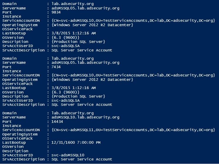 Найти все локальные экземпляры SQL можно командой Get-SQLInstanceLocal -Verbose. Чтобы найти все экземпляры SQL в сети или домене, используй команды Get-SQLInstanceDomain -Verbose, Get-SQLInstanceBroadcast -Verbose и Get-SQLInstanceScanUDP -Verbose.