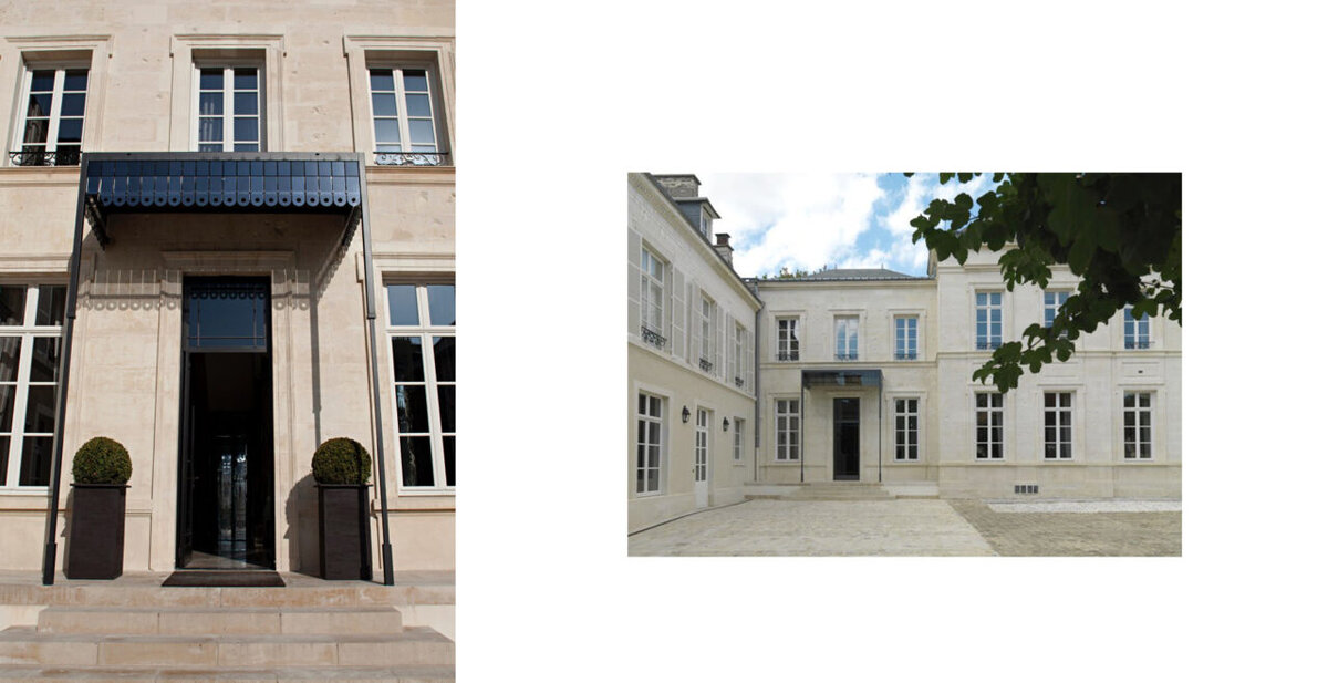 Неоклассический особняк 19 века принадлежит известному шампанскому дому Вдова Клико. Это одно из немногих зданий в Реймсе, столице Шампани, которое почти полностью сохранилось после Первой мировой войны в этом городе. Здание было приобретено семейством Клико почти двести лет назад для размещения гостей, а в 2011 году закончилась его четырехлетняя реставрация. Сейчас оно стало местом пребывания для партнеров и гостей дома шампанского. Через букинг в него точно не попадешь. Над дизайном интерьеров отеля работал известный французский архитектор Бруно Муанар. Здание было полностью переделано под современный образ жизни. Общественные зоны стали более просторными, кухни находятся рядом со столовыми, а в номерах появились ванные комнаты. Проходных вещей здесь нет, как и скучных интерьеров. Компания LVHM, куда входит бренд шампанского Вдова Клико приложила максимум усилий — людских, креативных и финансовых. В холле отеля глаз приковывает ковер украшающий лестницу, ведущую на верхние эта
