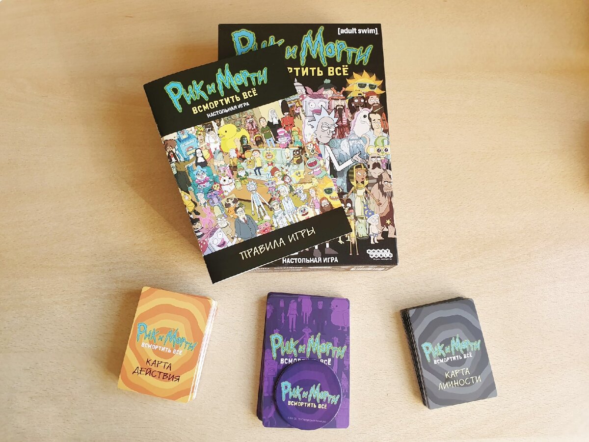 Еще одна настолка для тех, кто решил все же работать из дома и не подвергать ни себя, ни других опасности. Называется «Рик и Морти: всмортить все». Перед тем, как начать играть в это, нужно посмотреть 2 сезон 4 серия «Рика и Морти». Тогда будет понятна суть. Сначала мы решили попробовать порубиться в нее вдвоем. Правила для 2-х человек довольно простые, карты используются не все сразу, поэтому мы просто рандомно убивали паразитов. А это довольно скучное занятие оказалось. А вот, когда мы открыли ее уже в компании, то эффект был совершенно другим. Во-первых, раскрывается больше карт, что делает процесс увлекательнее. Во-вторых, при большем количестве людей используется дополнительный режим, который тащит всю игру. По сути, настолочка напоминает классическую мафию. Только игруля кооперативная и вы все работаете против нее. Так что минимум скандалов в процессе, а это как раз то, что нужно людям, сидящим в 4-х стенах вместе изо дня в день. Стоит она не очень дорого. Около 800 рублей. Короб
