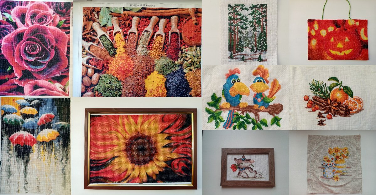Всем привет. Вот и прошла еще одна рукодельная неделя. Она у меня была насыщена круглыми цифрами и промежуточными финишами. Начну, как всегда, с алмазной мозаики. Как и планировала, закончила по ряду на каждом из процессов. На Льве готово 10 %. Вот как это выглядит. Все еще только начинается. А вот Ежики близятся к середине. Очередная полоска дала 40 % готового результата. Верхний ежик, кофейные зерна в мельничке и стойка с чашками уже готовы. Глянула на следующий ряд, там сначала очень много фона. Посмотрим, что будет дальше. Первым вышивальным процессом этой недели был Осенний парк. Его я чуть-чуть поковыряла. Сейчас вышиваю следующий кустик травы и немного начала мостик. Вот так процесс выглядит с лицевой стороны. А вот так с изнанки. На Коте от Химеры добралась до второго угла. Теперь можно рассмотреть длину работы. Полуметровой линейки у меня не было, поэтому положила две 30 и 20 см. Масштаб этой "мордашки" меня до сих пор впечатляет. А готово на этом процессе 20 %. Последним