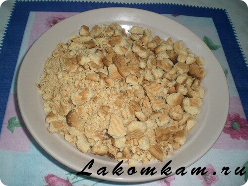 Десерт «Сладкая колбаса». Приготовление. Раскрошить печенье.