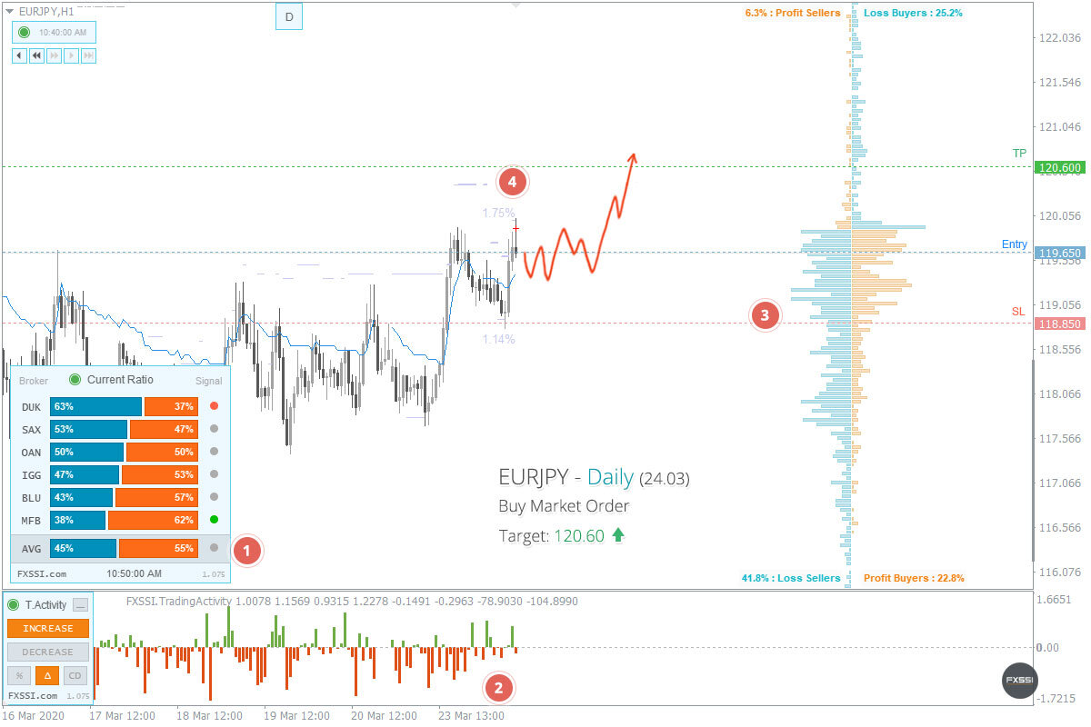 EURJPY - Восходящая тенденция продолжится, рекомендованы покупки по рынку