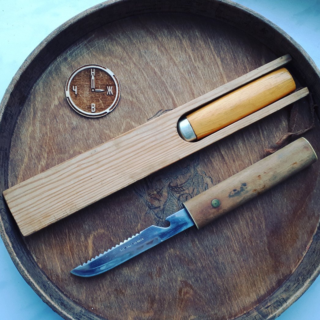 Нижний - японский плавающий рыболовный нож, верхний - финн в не совсем обычных ножнах, оба из 70-х