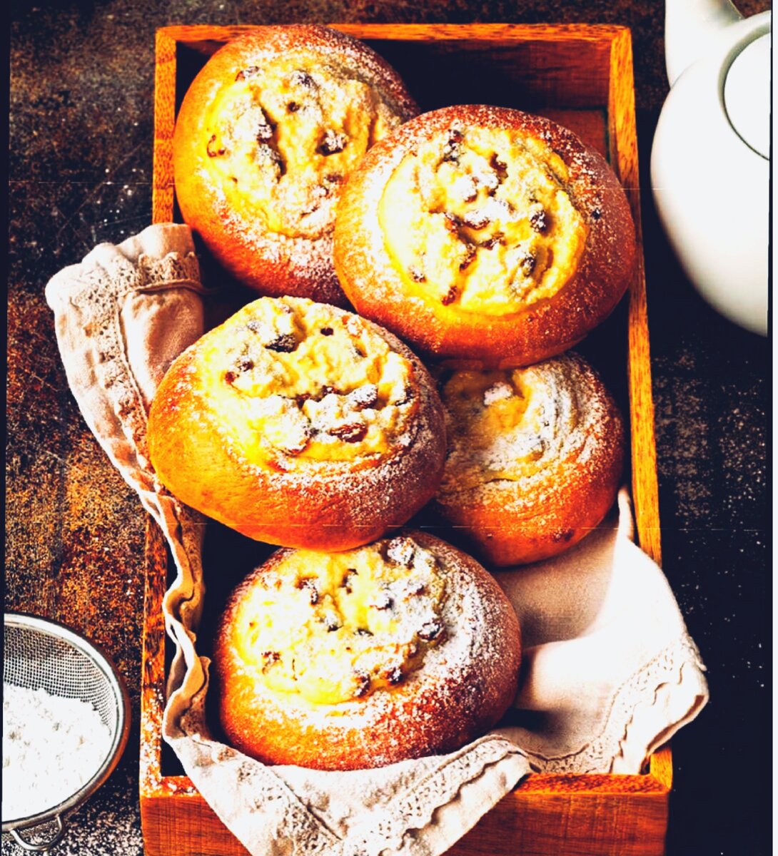Стоит только поставить противень с ватрушками в духовку, как дом сразу наполняется теплом и уютом. ⠀ Ватрушки с лимонным творогом и изюмом. Что нужно: 500 г муки 250 мл молока 100 г сливочного масла 130 г сахара 1 ч. л. сухих быстродействующих дрожжей 2 яйца и еще 1 для смазывания сахарная пудра соль Для начинки: 600 г сухого, жирного творога 2 яйца 150 г сахара 2 ст. л. сметаны (если понадобится) 1/2 стакана темного изюма тертая цедра 1 лимона ⠀ Что делать: 1. Приготовьте тесто. Нарежьте сливочное масло небольшими кусочками и растопите. 2. Подогрейте молоко, чтобы оно стало теплым, но не горячим, и растворите в нем сахар и соль. 3. Добавьте к молоку яйца и хорошо перемешайте. 4. Смешайте муку с дрожжами. Всыпьте половину муки в молочную смесь и размешайте. Постепенно подсыпайте муку, пока у вас не получится мягкое, эластичное тесто. 5. Добавьте растопленное масло и вымесите тесто руками, 5 мин., скатайте в шар. Положите в миску, накройте полотенцем и поставьте подходить в теплое место