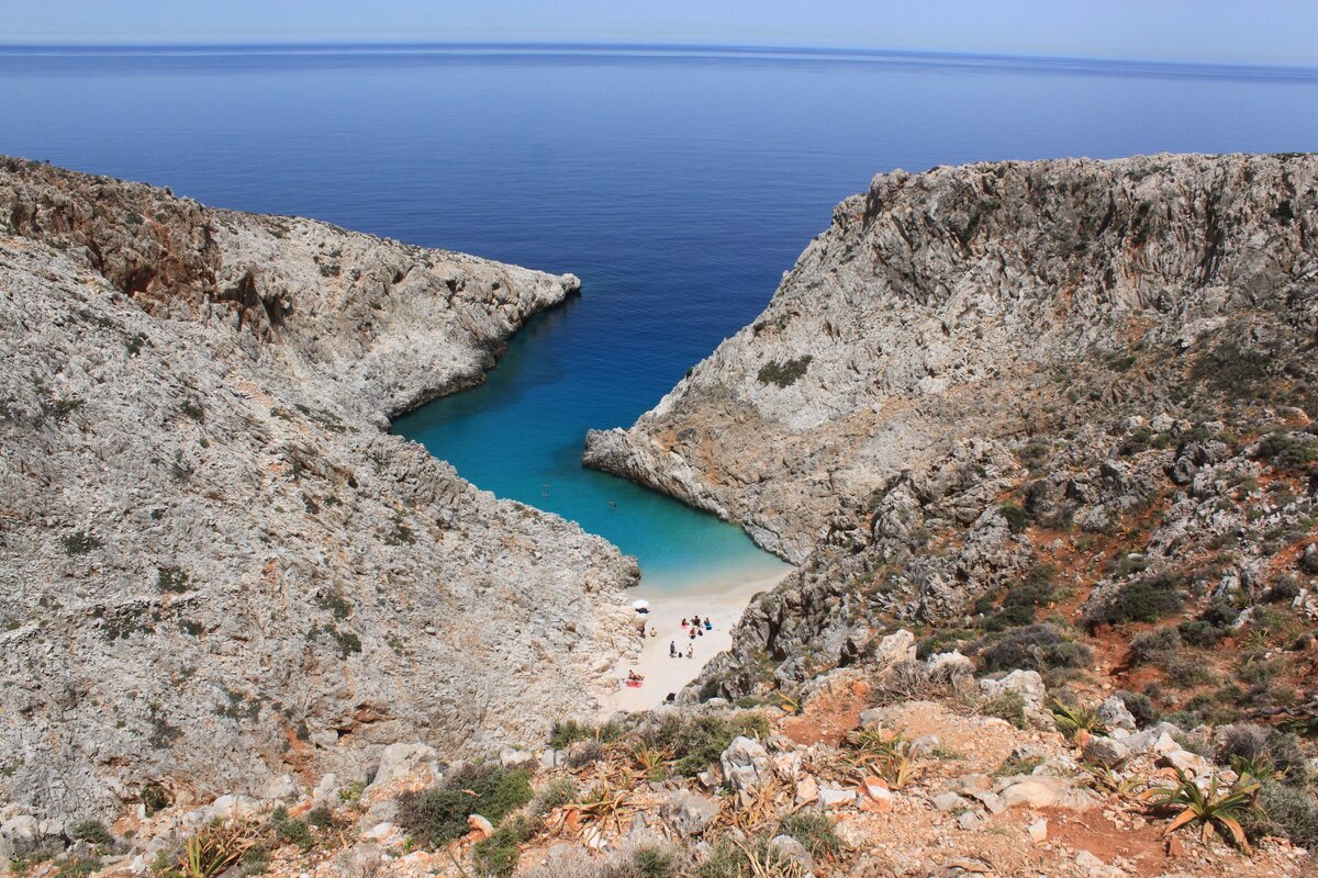 Севернее городка Ханья, что на Крите, есть небольшой полуостровок. Если двигаться на восточную его часть, можно найти небольшую живописную бухточку среди скал. Добраться до нее не так то просто. Горный серпантин с уклоном под 45 градусов. Узкая дорога, по которой с трудом могут разъехаться 2 легковых машины. После этого еще надо будет спуститься по козьим тропам до самого пляжа. Много вещей взять не получится. Дети тоже вряд ли смогут туда спуститься. Ну лучше им туда и не ходить, а то могут задавать вопросы - почему здесь тети загорают голышом. Местечко восхитительное. Метка для поиска - Seitan limania beach.