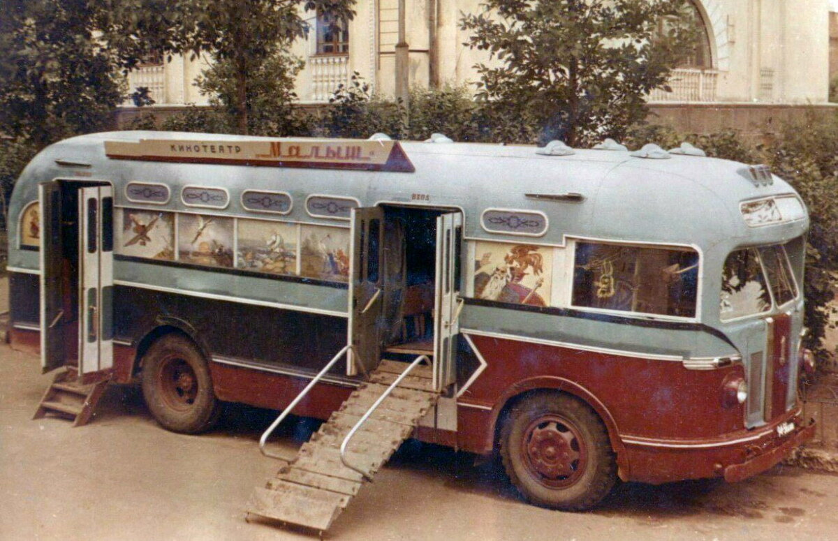 Этот передвижной детский кинотеатр был сделан в Уфе по инициативе водителя Горкомхоза Степана Стуколкина. Необычную машину, получившую название «Малыш», построили на базе старого автобуса ЗИС-155, установив в салоне два десятка сидений, кинопроектор и экран.