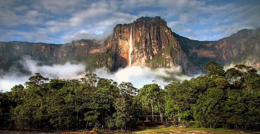 Водопад Анхель (он же называется Салто Анхель) самый высокий свободно падающий водопад в мире. Высота его составляет по разным оценкам 978 метров или 1054 метра. А уровень непрерывного падения воды равняется 807 метрам.