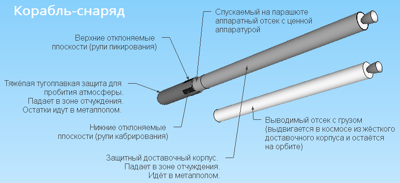 Снаряд, конечно, для этого должен быть тяжёлым, но большая часть этой массы может быть полезным грузом.