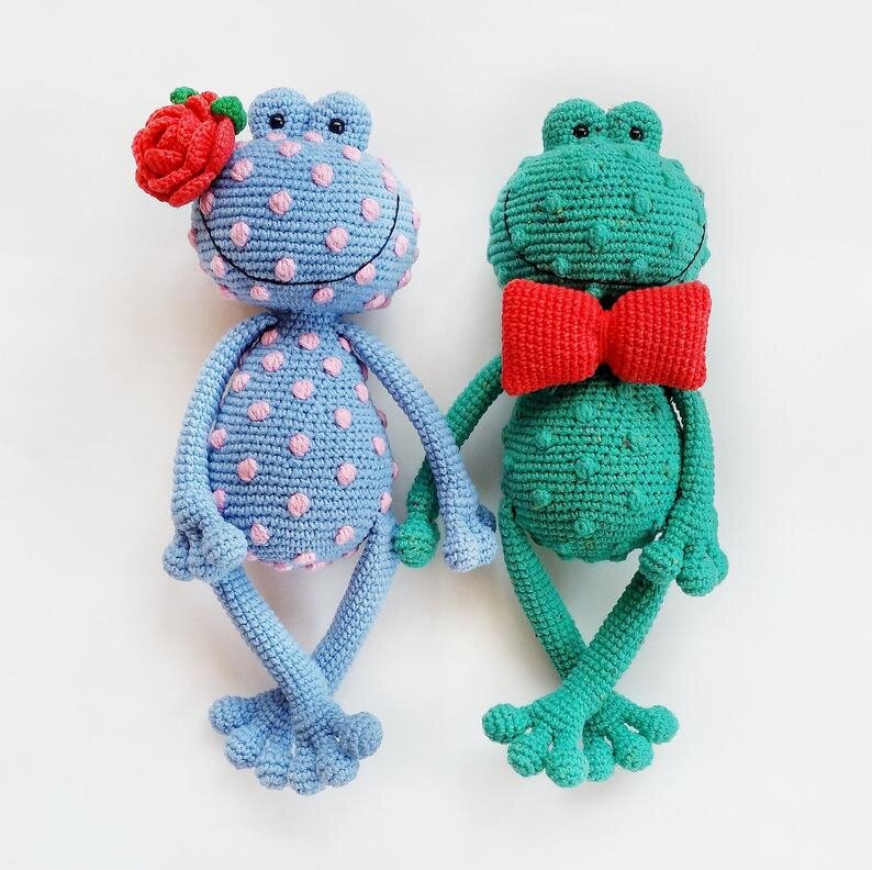 Огромное количество лягушек связано по всему миру мастерами. Лягушка–персонаж забавный и очень привлекательный. Подарок можно без труда сделать оригинальным, подарив вязаную игрушку. Есть люди, которые коллекционируют лягушек, интересно в их коллекциях есть вязаная? Еще с давних времен люди верили в приметы, и лягушки, по народным наблюдениям, практически всегда являются хорошими вестниками. На протяжении многих веков считается, что лягушки притягивают удачу и изобилие, а также приносят хорошие новости и предвещают большие изменения в лучшую сторону. Даже множество песен сочинили про лягушек. Раньше считалось, что вяжут только бабушки. Сейчас же это осталось в далёком прошлом. Игрушки вяжут во всём мире. На просторах интернета можно найти огромное количество разных описаний, получается, что вязать сейчас стало модно. В группах по вязанию можно увидеть множество идей вязаных лягух. Сумки, шапки, тапки, аппликации, салфетки и много других вещей придумано любителями