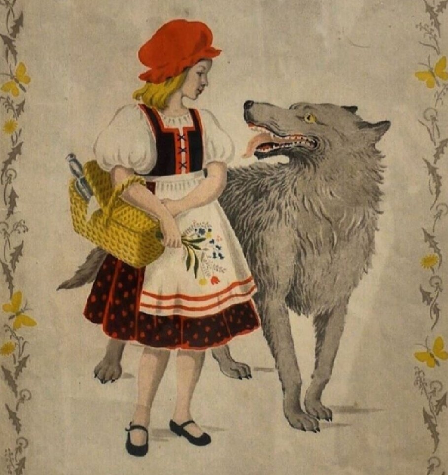 Сказка о приключениях девочки, которая встретила волка, существует очень давно. Такой сюжет передавали из уст в уста жители средневековых Италии и Франции. В Центральной Европе эта история была распространена с XIV века и пользовалась невиданной популярностью. Причем в разных странах содержимое корзинки маленькой девочки варьировалось. Так, на севере Италии девочка шла к бабушке со свежими рыбами, в швейцарских сказаниях — с молодым сыром, во Франции в корзиночке внучки — пирожки и масло.