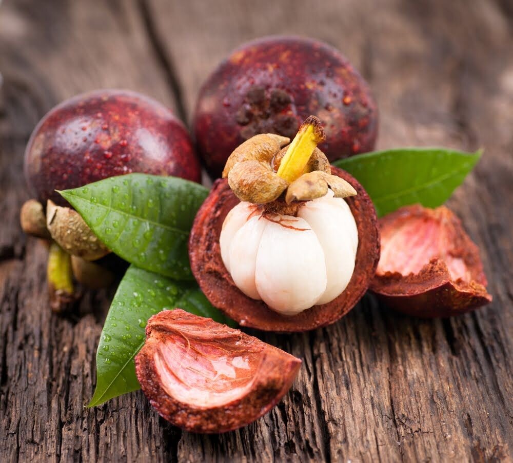 Мангостин — высокое вечнозелёное дерево высотой до 25 м с пирамидальной кроной и чёрно-бурой корой. Листья овально-продолговатые, тёмно-зелёные сверху и жёлто-зелёные снизу, 9 — 25 см длиной и 4,5 — 10 см шириной. Молодые листья — розовые. Цветки с мясистыми зелёными с красными пятнами лепестками. Плод круглый, диаметром 3,4 — 7,5 см, сверху покрыт толстой (до 1 см) бордово-фиолетовой несъедобной, содержащей клейкий красящий латекс, кожурой, под которой находится 4-8 сегментов белой съедобной мякоти с плотно прилегающими к ней семенами. Растение плодоносит поздно — первые плоды на деревьях на 9-20 год жизни. Родина мангостана — Юго-Восточная Азия. Широко культивируется в Таиланде, Мьянме, Вьетнаме, Камбодже, Малайзии, Индии, на Шри-Ланке, Филиппинах, Антильских островах, в Центральной Америке, Колумбии, тропической Африке Как ни странно, но в диком виде мангостин не встречается, она известна только как природный культивар. Считается, что это просто каприз природы - естественный гибрид