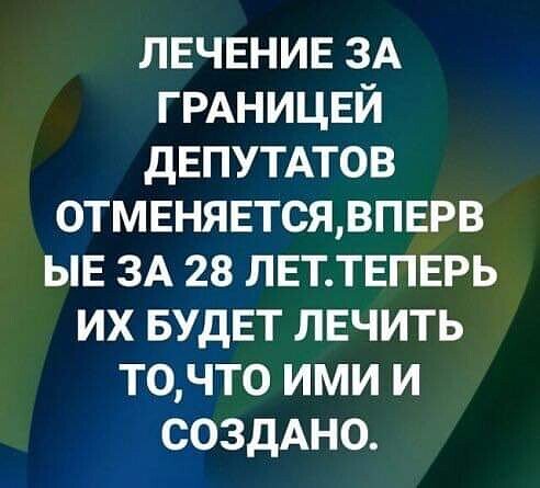 Собственно за что "СПАСИБО" понятно из текста на картинке. Сколько народ стонал от этих бездарных чиновников и паразитов из едим россию.. Ужас. В какую клоаку они превратили все, что можно в стране. А сами оттягивались на заграничных курортах, ездили по шикарным дорогам, лечились в прекрасных клиниках.. А теперь всЁ господа! Получите бумеранг вашей "деятельности" по полной! Особенно те, кто не из высшей прости господи "элиты" московской. Да и те вкусят все "прелести" российской жизни будничной. Времени впереди ой как предостаточно, судя по мнениям специалистов медиков из за рубежа. Граница на замке не скоро откроется. И будете вы вынуждены со своими семействами ближайшие летние месяцы загорать на своих дачах, ездить по разбитым дорогам, обращаться за помощью к местным врачам когда приспичит. Покупать еду в наших же магазинах.И т.д. и т.п. В конце концов воздухом загазованным дышать вместе с простым народом в пром. городах особенно. И данное обстоятельство ну очень радует и поднимает на