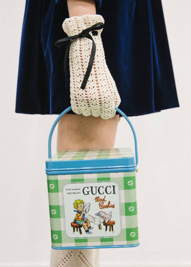 Коллекция была вдохновлена любовью Алессандро Микеле к причудливым деталям одежды для детей. Аккуратные воротники с вышивкой и отделкой из кружева украшали прозрачные платья. Лакированные туфли «Мэри Джейн» были дополнены платформой. Другие образы включали костюмы с расклешенными брюками из шерсти с узором в клетку, платья с пышными слоями кружева и сумки с цветочными принтами Liberty. В число представленных сумок вошли архивные модели Jackie и Gucci 1955 Horsebit в новой форме с верхней ручкой. https://www.gucci.com/