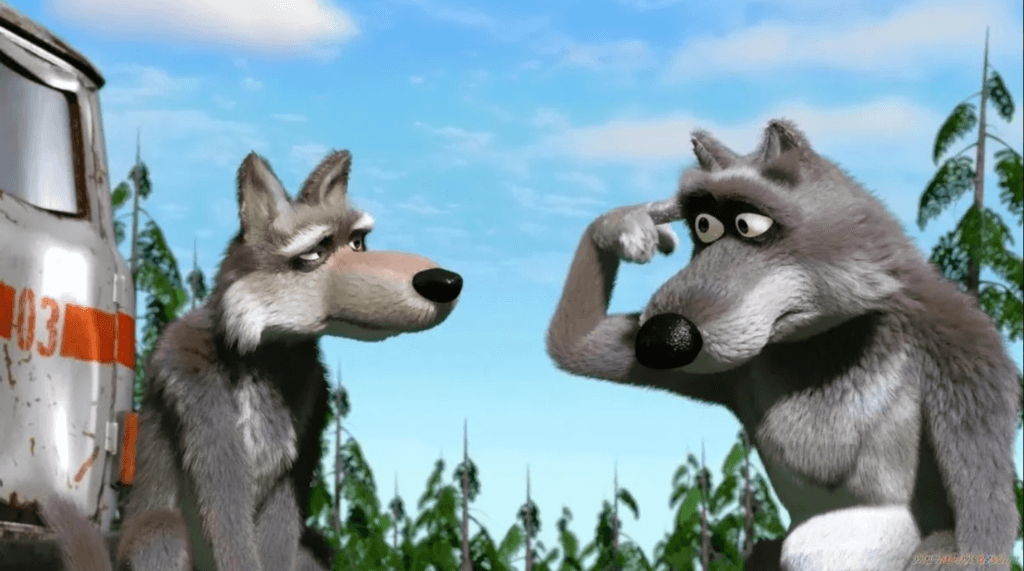 Волк с пальцем у виска (Волк крутит у виска) – мем с волком из мультсериала “Маша и медведь”, который крутит пальцем у виска. Происхождение Кадр, ставший мемом, взят из 28 эпизода российского сериала “Маша и медведь”. Серия называется “Ход конем”. В ней в середине 3 минуты медведь воет по-волчьи. Услышав это, волки непонимающе переглядываются, один из них крутит пальцем у виска. Впервые в качестве мема этот кадр стали использовать в 2017 году. Тогда в соцсетях распространилась гифка, на которой волк крутит у виска. Эта шутка широко использовалась в “Одноклассниках”, “Живом журнале” и на сайтах типа “Фишки.нет”. В начале 2020 года ВКонтакте начали форсить абстрактные мемы с волком из “Маши и медведя”. Точно неизвестно, кто и когда запустил этот мем. Но к концу января различные постироничные интерпретации мема мелькали в каждом втором паблике. Значение Мемы с волком встречаются в комментариях ВКонтакте. Их постят как реакцию на что-то глупое. Жест с пальцем у виска демонстрирует