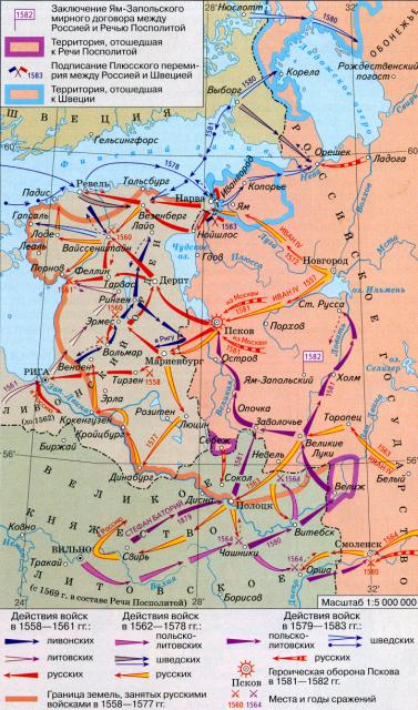 - Ливония – историческая область на территории современной Латвии и Эстонии. В XVI веке Ливония занимала обширные территории, контролируя значительную часть побережья Балтийского моря. За выход к Балтике и развязалась долгая, сложная и кровопролитная война, позже названная историками Ливонской. Эта война стала одним из самых значимых событий во внешней политике Русского царства; продолжаясь с 1558 по 1583 гг., она во многом определила дальнейшие отношения России и Европы. В 1561 голу Ливония или Ливонская конфедерация распалась, а части ее вошли в состав Великого княжества Литовского. В 1569 году Литовское княжество объединилось с Польшей в единую Речь Посполитую. Затянувшийся конфликт противопоставил Русское царство и Речь Пополитую, что впоследствии вылилось в многовековые сложные отношения между двумя государствами.