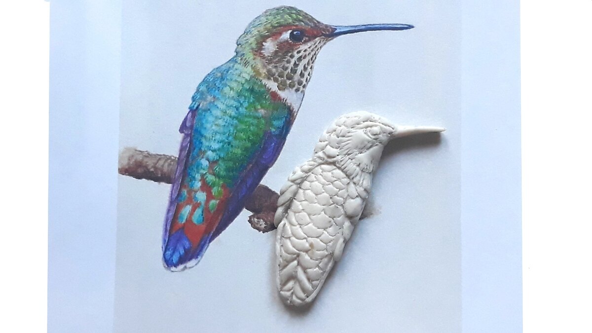 Маленькая колибри будет частью кулона. Поэтому я делаю эскиз будущей работы. И перевожу контуры фигурки, которую буду лепить, на кальку.