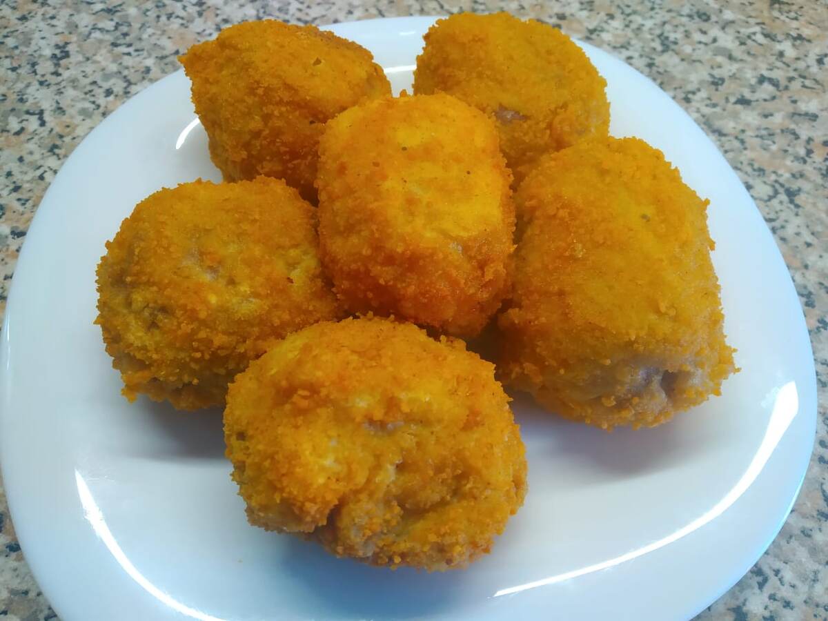 Свинина: 300гр. Сыр: 150гр. Растительное масло: 300гр. Яйцо: 3шт. Панировочные сухари: 50гр.-100гр. Мука: 50гр. Соль, перец: по вкусу) Приготовление: Мясо нарезаем на порционные кусочки Каждый хорошенько отбиваем, посыпаем солью и перцем На мясо кладём не большой кубик сыра Заворачиваем и придаём форму шарика Тоже проделываем с остальными Подготавливаем панировку, мука, яйцо и сухари Панируем и кладём в разогретую ёмкость с растительным маслом и обжариваем до золотистого цвета Перекладываем в дуршлаг и даём стечь остаткам масла Перекладываем на тарелку и подаём к столу ПРИЯТНОГО АППЕТИТА!!! И не забываете подписаться что бы не пропустить новых рецептов))))