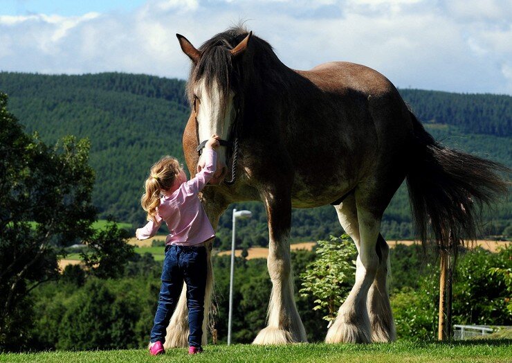 Шотландский гигант жеребец Диггер весит 1200 кг, рост составляет 1,96 м. Он занимает 7-ую строчку рейтинга самых больших лошадей. Он хорошо себя ощущает, если за день съест 25 кг сена и выпьет около 100 литров воды. Когда Диггеру было 4 года, у него поменялся хозяин. Быстрый рост, в это время он уже вырос до 1,96 м, и здоровый аппетит не на шутку испугали бывшего владельца, и он решил передать скакуна другому хозяину. Громадный конь был принят в конный полк английской королевы. Но ему сложно жилось в Лондоне, и сейчас он вернулся на шотландские просторы.
