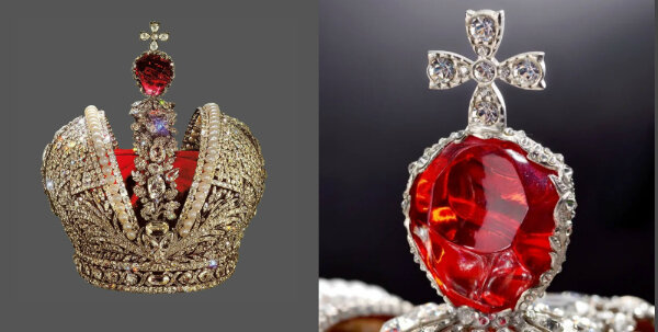 Шпинель украшает ряд королевских регалий. Например, легендарную Большую императорскую корону, которую носили все монархи России с 1762 по 1917 годы. Также шпинель сияет на короне английских монархов, о которой вы узнаете из нашей статьи далее.