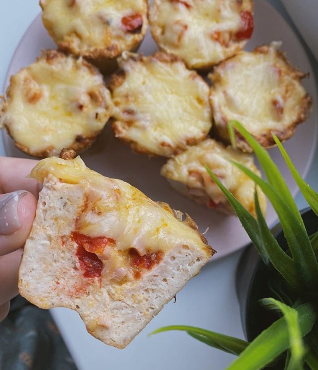 ✔️Ингредиенты Фарш из куриной грудки- 500гр Карбонад- 100гр Помидоры- 1 шт ( или 6 Черри) Соус/сметана-1 ст.л Сыр- 30гр ✔️Приготовление : Карбонад и помидоры порезать на кубики. В отдельной миске смешать с соусом. Фарш,с помощью вилки,выложить в формочки для маффинов,оставив посередине небольшое углубление. В середину выложить начинку и запекать в духовке 20-25 минут при 180 градусов. На горячие маффины выложить на твёрдый сыр. КБЖУ на 1 маффин (всего вышло 7 шт): 139,5/14/12,4/0,7