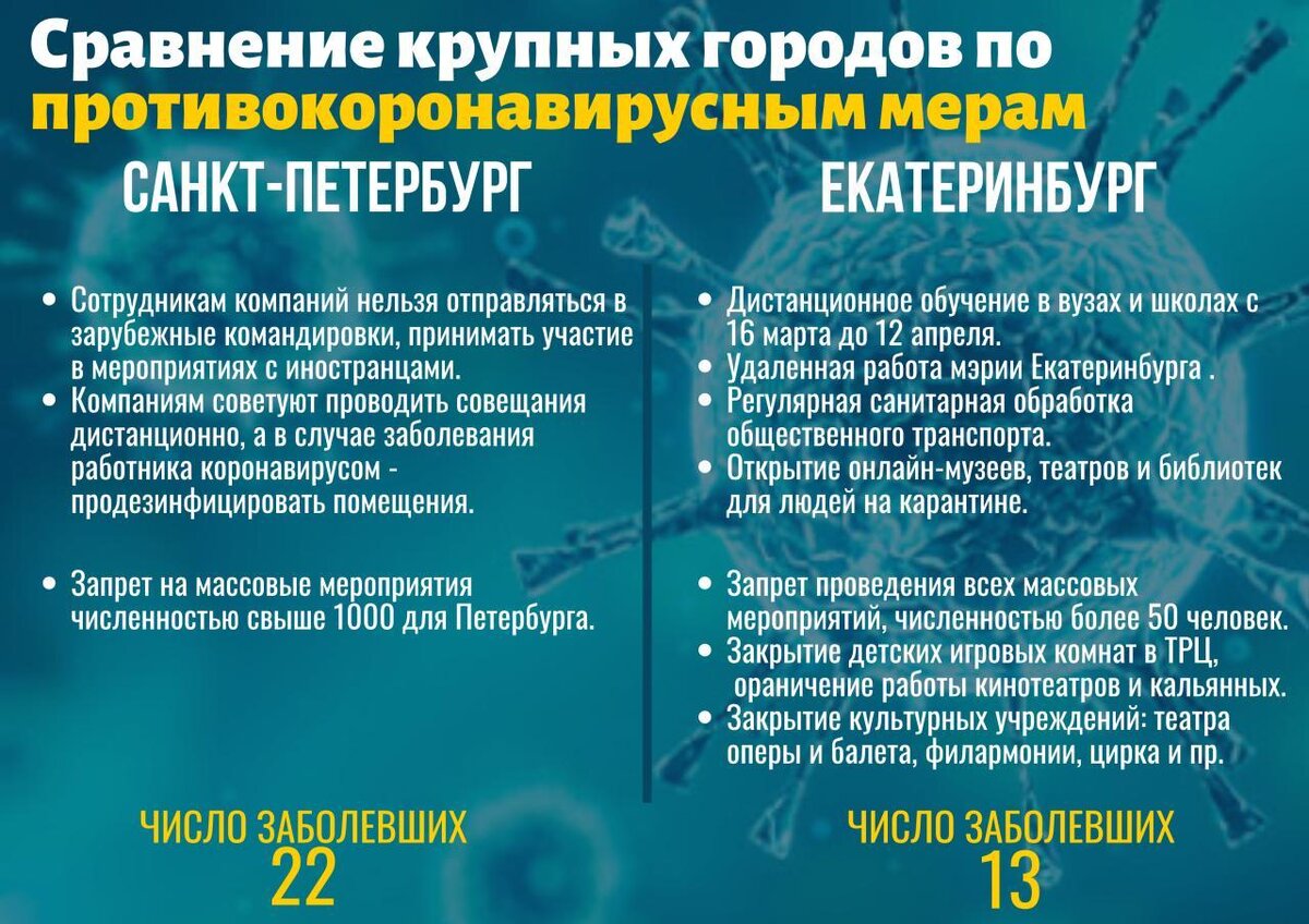 Где карантин жестче? ⠀Сравниваем, какие меры профилактики коронавируса ввели в Санкт-Петербурге и Екатеринбурге. 🚧