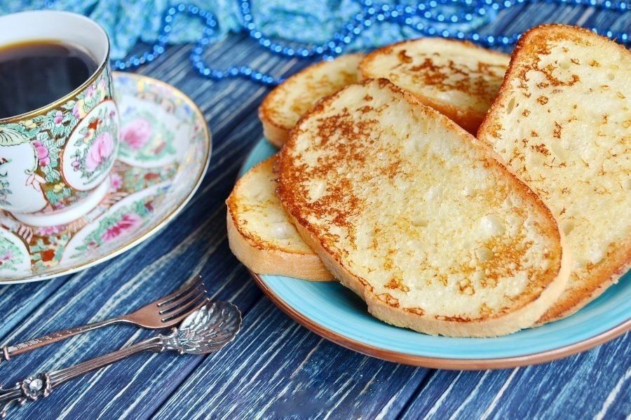 Количество порций: 3 шт. Ингредиенты: Хлеб белый — 8–9 ломтиков Молоко — 1 стак. Яйцо — 1 шт. Сахар — 2 ст. л. Сливочное масло — 30–40 г Приготовление: 1. Подготовьте продукты. Количество ломтиков хлеба может быть меньше или больше, в зависимости от размера буханки. 2. В молоке растворите сахар и добавьте яйцо. 3. Хорошенько венчиком или вилочкой взболтайте массу. 4. Поставьте сковородку на огонь, положите кусочек сливочного масла. Каждый ломтик хлеба окунайте в молочную смесь, чтобы с двух сторон хлеб пропитался. 5. Жарьте гренки с двух сторон до образования красивой золотистой корочки. Перед каждой партией кладите на сковородку маленький кусочек масла. 6. Сладкие гренки готовы. Приятного аппетита!