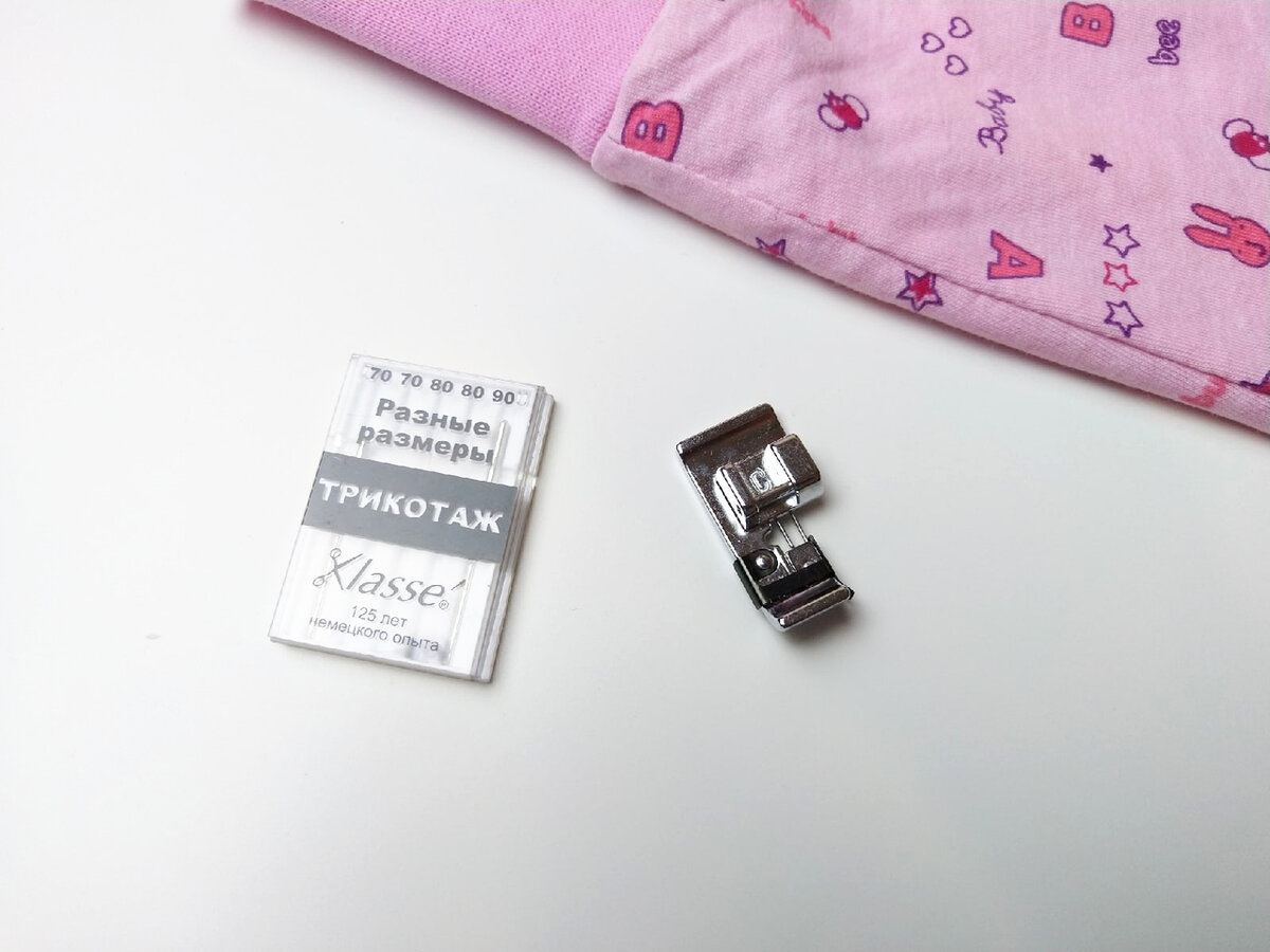 Если очень хочется шить трикотаж, а оверлока нет, то можно шить на простой машинке псевдооверлочной строчкой. Получается вполне качественная вещь, которую можно носить. Для пошива нам нужны: -Иголки для трикотажа. Для тоненьких тканей номер 70-80, для плотных 80-90 - Лапка для оверлочной строчки Нитки беру универсальные 40/2 пэ (Бестекс, Идеал) Я шью ползунки по готовой выкройке, размеры 62-92. Выкройка по ссылочке
