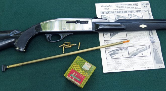 Пятидесятые годы можно назвать временем "пластиковой революции" - пластмассы применялись все шире настолько, что иногда кажется, что их совали везде, куда только приходило в голову. Для конструкторов Remington все началось с разумной мысли - перейти от использования дерева для винтовочного приклада и цевья к гораздо более технологичной пластмассе. Но, правда, в процессе они увлеклись настолько, что винтовка, получившая название Nylon 66, стала не просто первой крупносерийной в пластиковом "обвесе" - но еще и вовсе практически целиком пластмассовой.