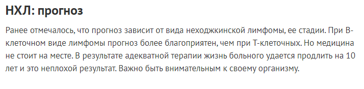 его заболевание - Лимфома неходжкинская. Или как ее еще называют - рак лимфы. Вот что пишет о болезни один из медицинских сайтов.