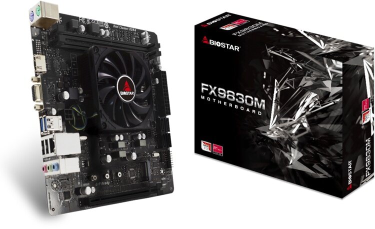 На основе которой можно создать домашний мультимедийный центр или настольный компьютер в компактном корпусе. Новинка изначально оснащена процессором AMD FX-9830P. Чип содержит четыре вычислительных ядра с тактовой частотой 3,0 ГГц и возможностью повышения до 3,7 ГГц. Плата выполнена в формате Micro ATX: габариты составляют 183 × 200 мм. Для модулей оперативной памяти DDR4-2400/2133/1866 есть два слота: в системе можно задействовать до 32 Гбайт ОЗУ. За обработку графики отвечает интегрированный ускоритель AMD Radeon R7. Предусмотрен слот PCIe 3.0 x16 для дискретной видеокарты. Для подключения накопителей доступны четыре порта SATA 3.0. Кроме того, имеется коннектор M.2 для твердотельного модуля. Оснащение включает гигабитный сетевой контроллер Realtek RTL8111H и звуковой кодек ALC887 формата 7.1. На интерфейсную панель выведены гнёзда PS/2 для клавиатуры и мыши, разъёмы HDMI и D-Sub, по два порта USB 3.2 и USB 2.0, разъём для сетевого кабеля и аудиогнёзда.