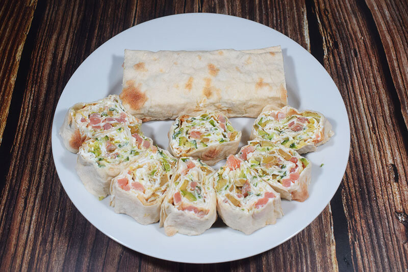 Примерное КБЖУ на 100 грамм блюда: Б - 8,1 г; Ж - 10,1 г; У - 13,3 г; 174,2 ккал. Ингредиенты: - лаваш - 90 г; - сливочный творожный сыр - 100 г; - греческий йогурт - 70 г; - лук порей - 30 г; - свежие огурцы - 70 г; - спелое авокадо - 70 г; - слабосолёная сёмга - 80 г; - соль по вкусу; - гранулированный чеснок по вкусу; - черный молотый перец по вкусу. Способ приготовления: Подготавливаем начинку