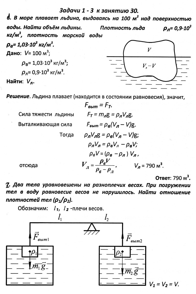 Задачи 1 - 3 к занятию 30. Закон Архимеда