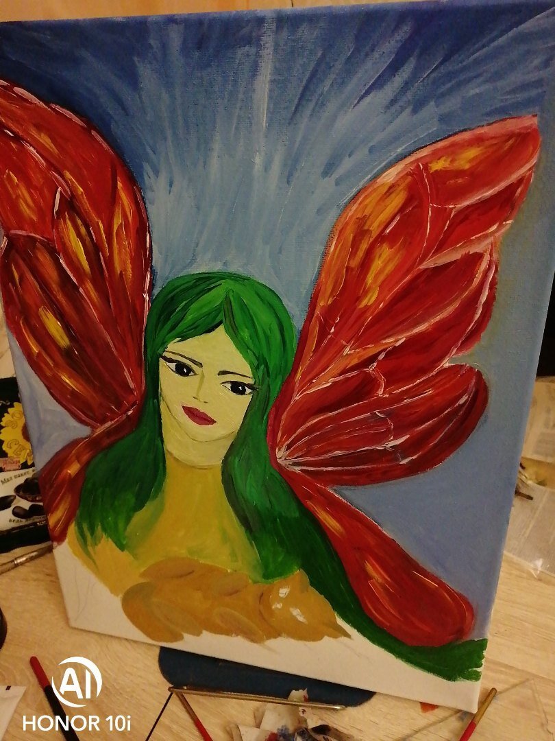Ок. Девочка. Процесс пошёл. Карандаш. Нарисовала девочку ангела. Стоит, с крылышками. Смотрю на неё. Нет. Не то. Стираю карандаш с холста. Рисую другую девочку, просто лицо. Опять стираю. Потом ещё. Крылышки ангела превратились в крылышки феи. Рисовалась девочка фея. И вроде ничего не предвещало беды.