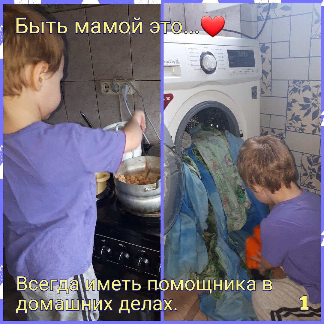 Всем привет. Все помнят знаменитые вкладыши от жвачки Love is…? Я хочу сделать, что то подобное только из фотографий с подписью «быть мамой это…» 1. Ох уж эти помощники. И стиральную машинку загрузят чистыми вещами и выгрузят грязные вещи, и кушать помогут приготовить. За ними глаз да глаз. И в тоже время это умиляет, как он пытается мне помогать, забирая пылесос или швабру. Как он тащит тяжёлый пакет с продуктами, пыхтит и говорит что не тяжело. 2. И не только знать всех персонажей, но ещё знать все песни из мультиков и целый день ходит их напевать. Помню, как понравилась Глебу одна песенка, детская, которая крутилась у нас сутками на повторе, мне даже снилась она. Я засыпала, а в голове крутились слова этой песенки. 3. Я учусь заново быть маленькой. Собираю конструктор, рисую, леплю, качаюсь на качели, играю в прятки. Быть мамой это весело, это снова окунутся в детство и вспомнить, что это было самое беззаботное и лучшее время. 4. Когда появляется ребёнок, в твоём телефоне появляется
