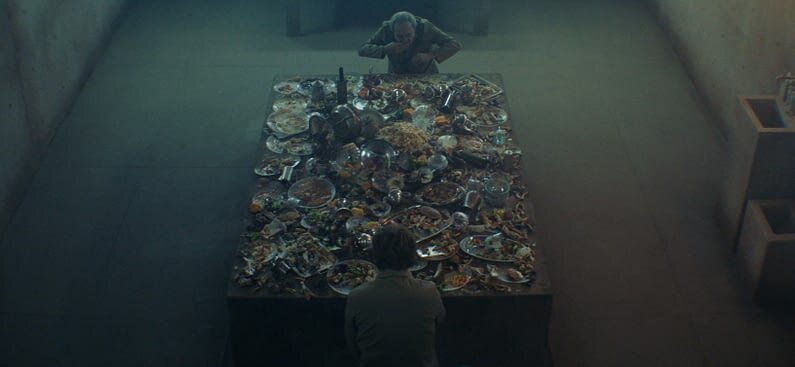 Мне очень нравится, что создатели "Платформы" взяли по сути уже существующие идеи, но воплотили их в своей манере. Незнакомцы с общим столом - это простая метафора неравенства экономического и социального. Те, кто выше, имеют больше чем нужно. А все, кто ниже, часто недоедают.